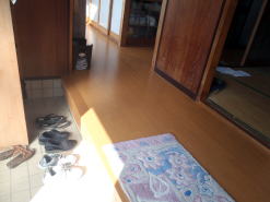 ・台所部分は増築によりフロアーが別々のものが張られており、増築前のフロアの方がぼろぼろになっておりました。全面フロアーを張ることで一体的となり明るい空間となりました。