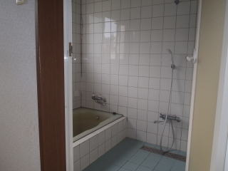 | 着工前 ・タイル張の通常浴室からユニットバスへの改修になります。 ・浴室内が寒いということと一部タイルにひび割れ等が発生しており、ユニットバスにしたいとのご相談があり今回の工事となりました。 |